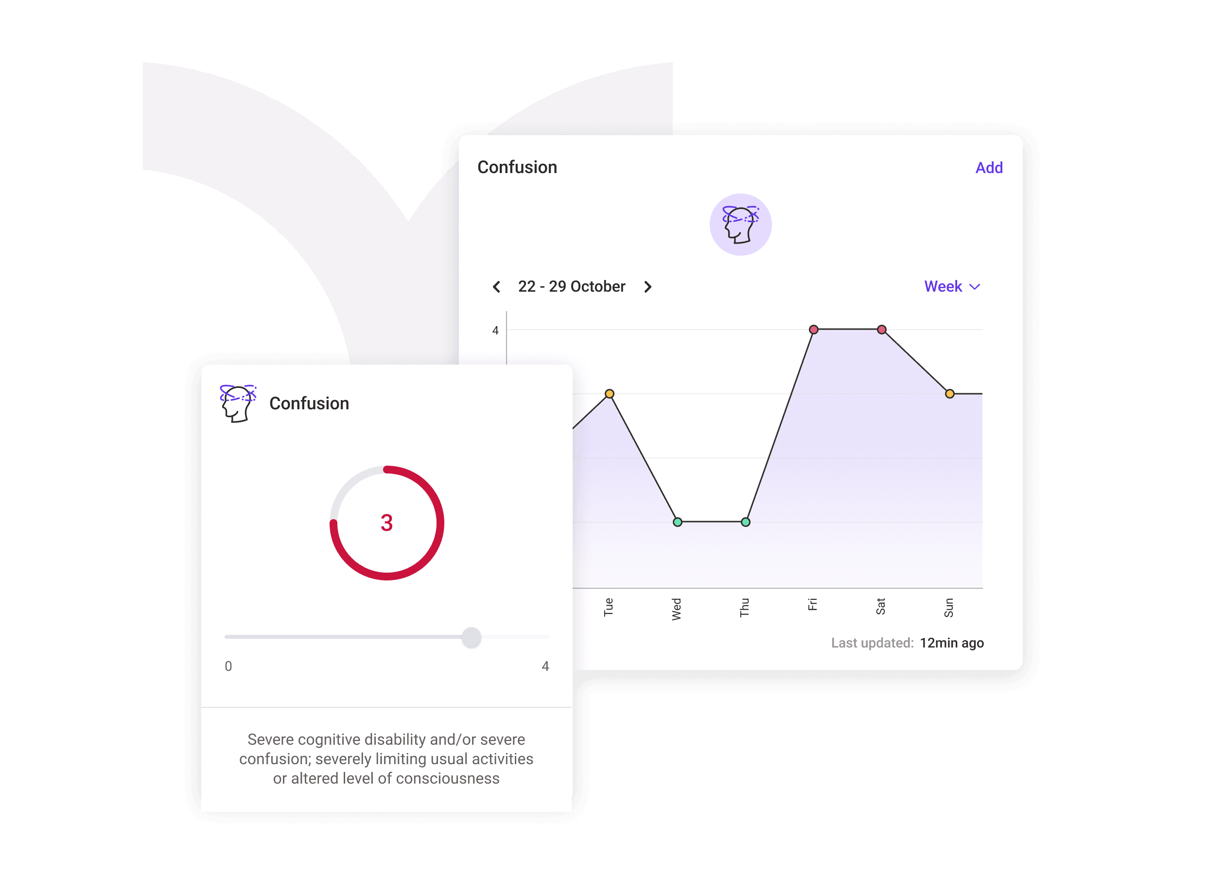 Scoring symptoms and side effects provides visibility of how the patient is feeling, and means they know when to report any issues. Bluetooth device connectivity also helps build an understanding of emerging issues and patient status.